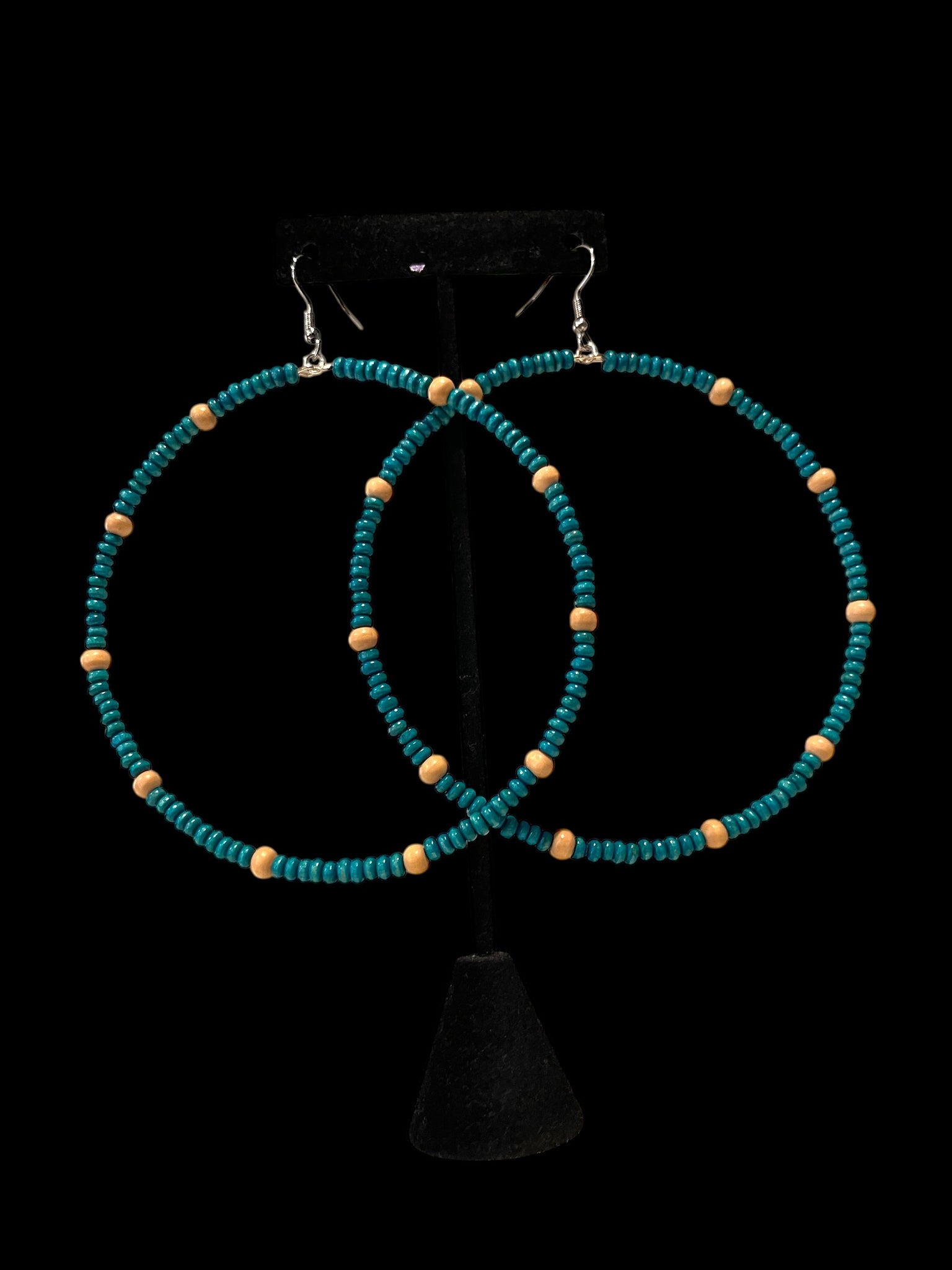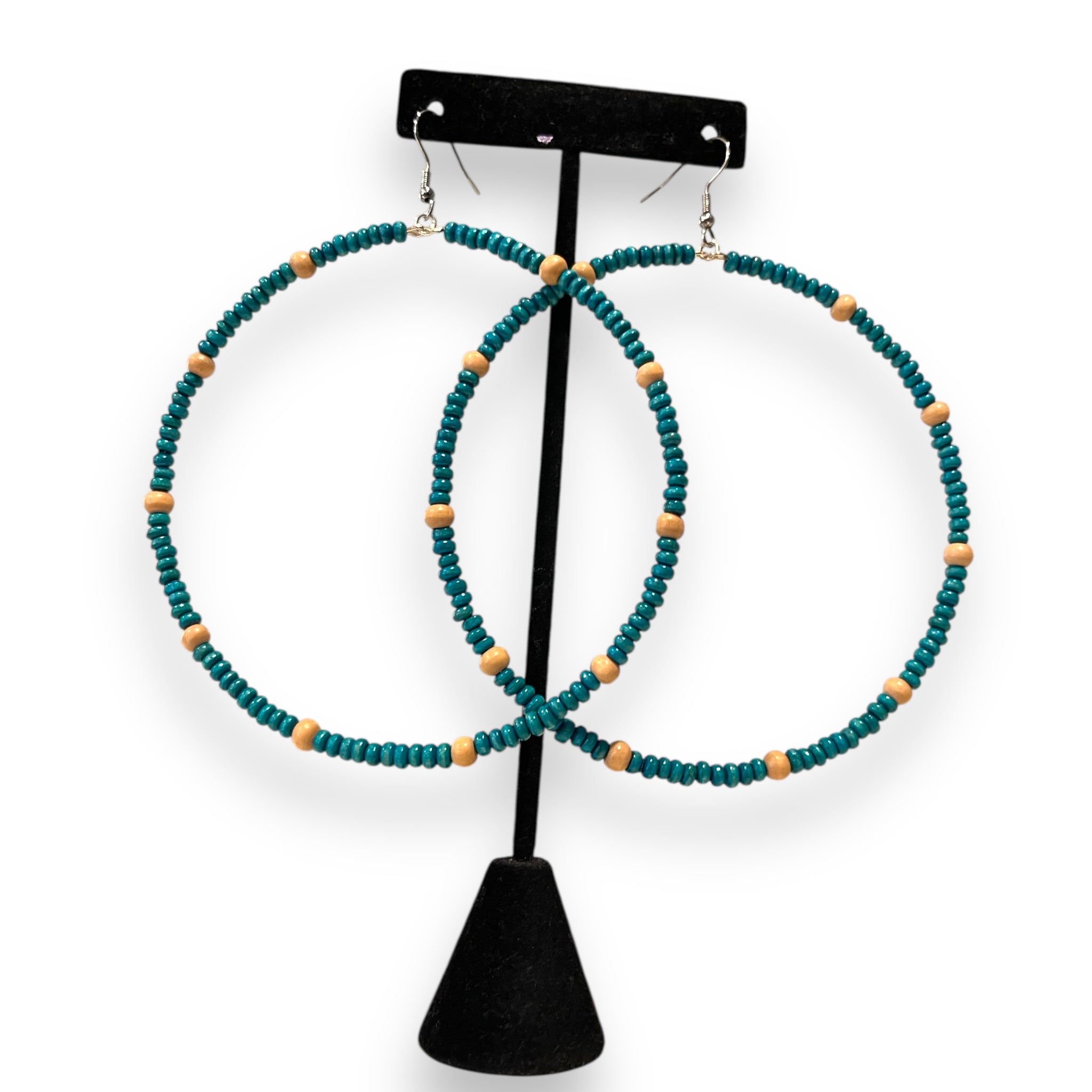 Earrings Boho Style Big Beaded Hoops; lightweight , 4in thin fashion earrings; wood seed beads