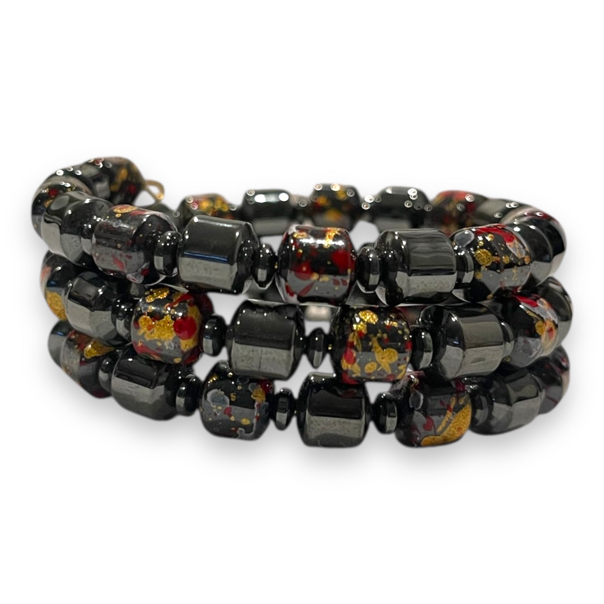 osfm Men's Women's / 1 of 1 / memory wire wrap bracelet; 6mm / 4mm Hematite plated beads