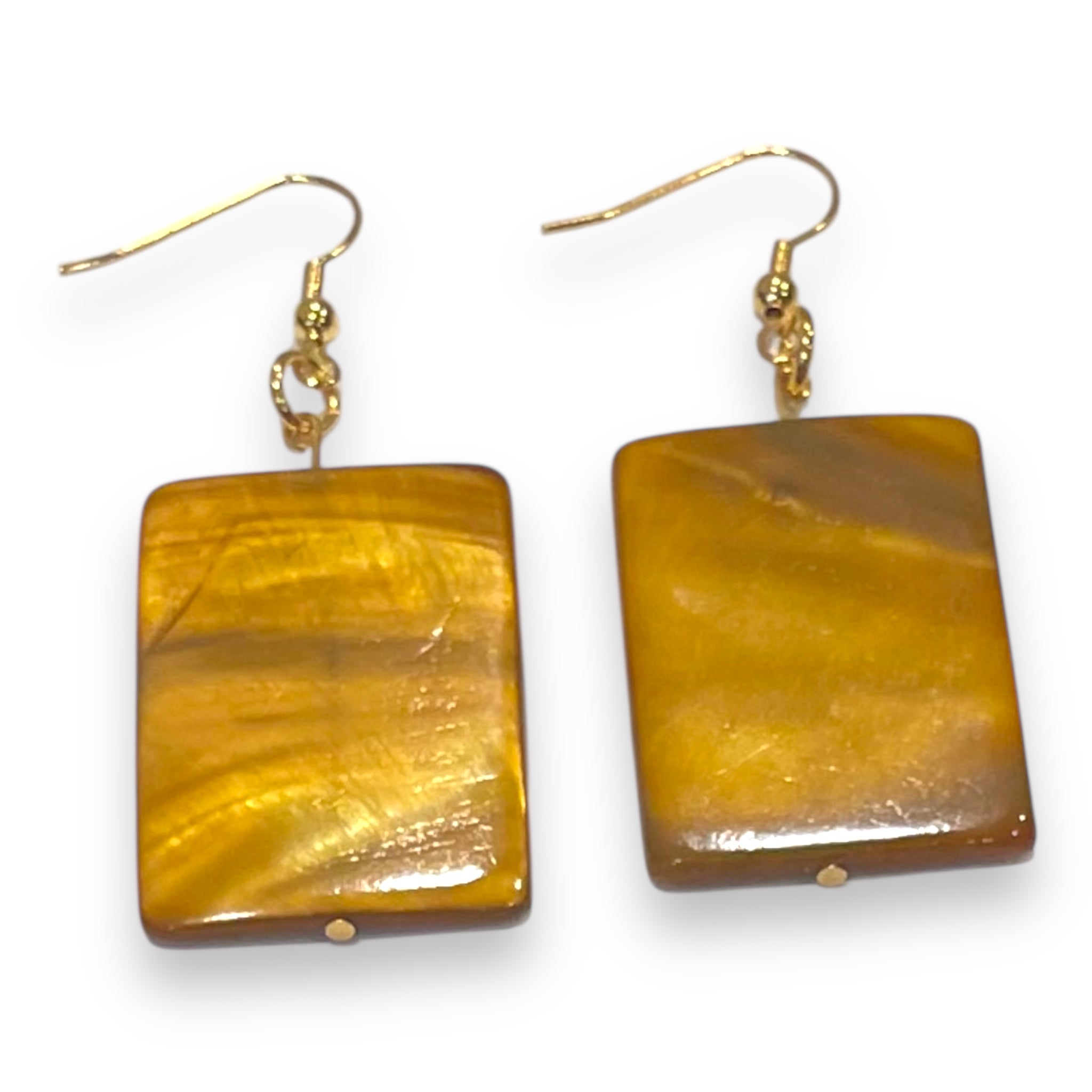 Earrings Tiger's Eye Chic: 2 in total length / 10k gold plated French hooks, Tiger Eye rectangle stones